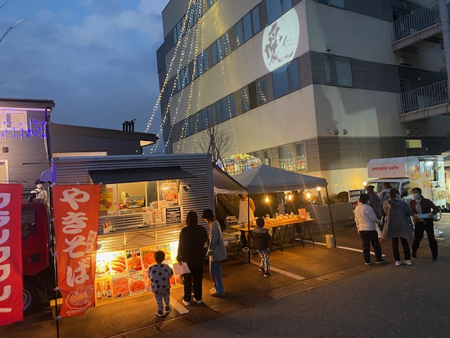 今夜はキッチンカーも登場。からだを温めながら灯を楽しんでいただいています。